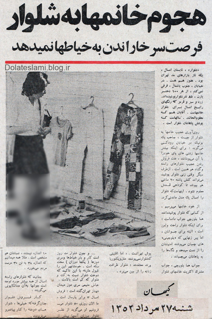 شلوار تابستان امسال یکه تاز مد بازار تهران بود و هنوز هم هست. در خیابان های جنوب یا شمال فرقی نمی کند. از هر 100 دختر یا زن، 85 نفر شلوار پوشیده اند. زرد و سبز و قرمز که رنگ های رایج امسال برای شلوار خانمهاست. آقایان هم که معلوم الحالند. سالهاست که پوشش پایشان شلوار است!